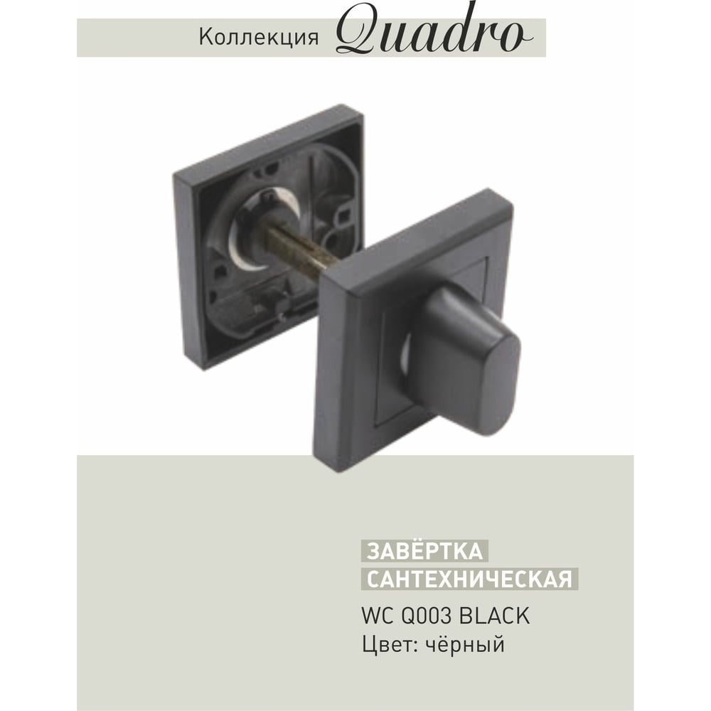 Габариты без упаковки 51х51 мм Материал ЦАМ Цвет черный Количество 1 шт Тип WC-комплект Коллекция Quadro Толщина дверного полотна 40 мм Форма основания квадрат Ключ нет Размер сечения квадрата фиксатора 6 мм Длина квадрата 80 мм