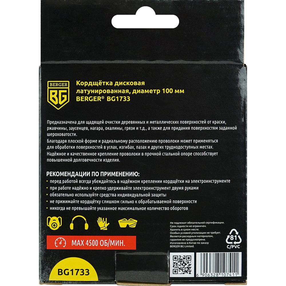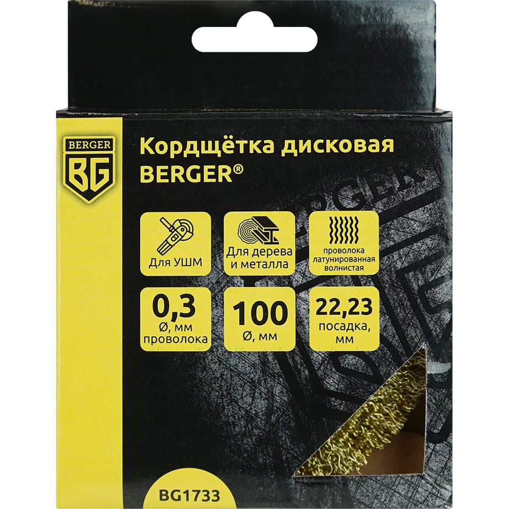 Кордщётка дисковая 100 мм, латунированная сталь 0.3 мм, посадка 22.23 мм Berger BG BG1733