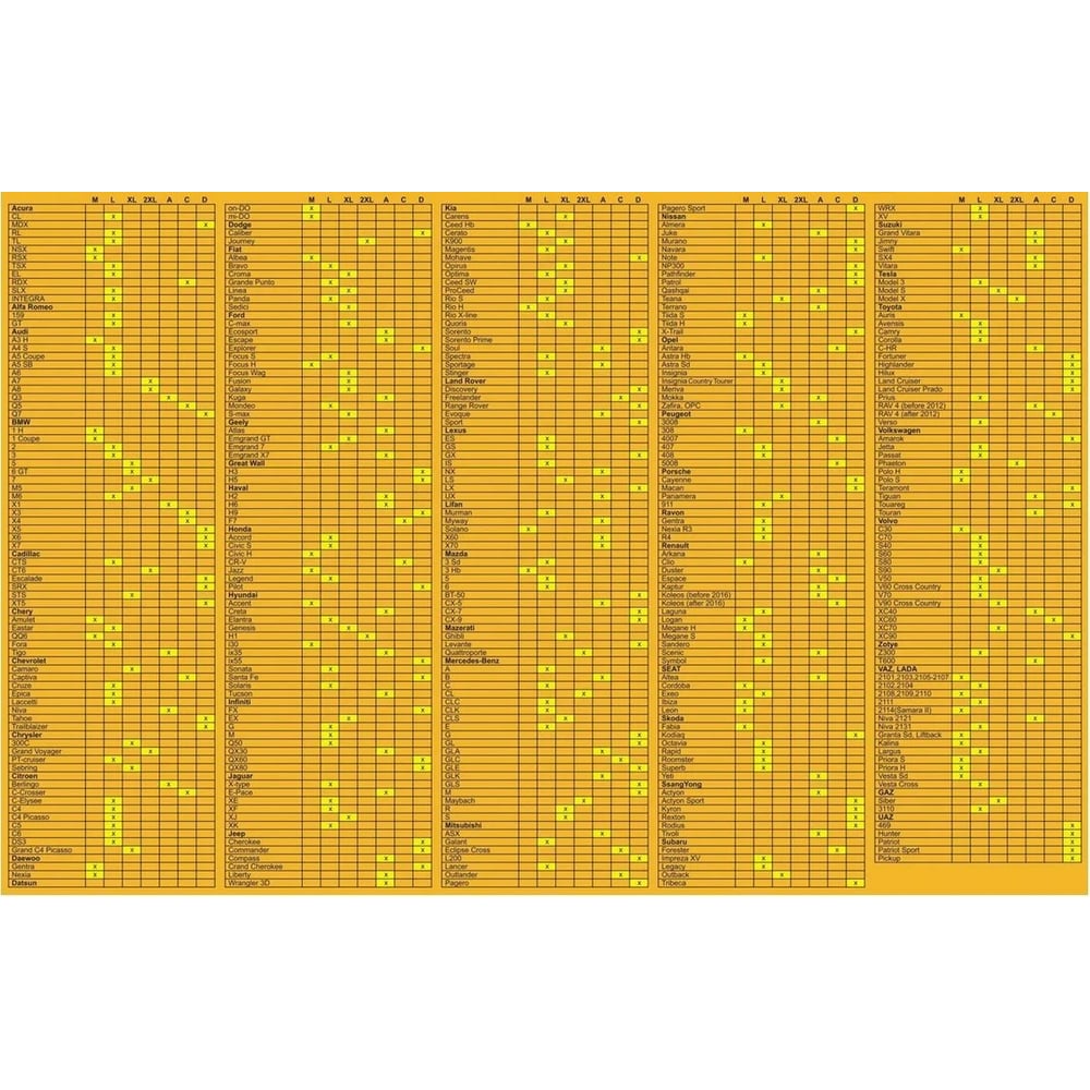 | Марка автомобиля | универсальные |