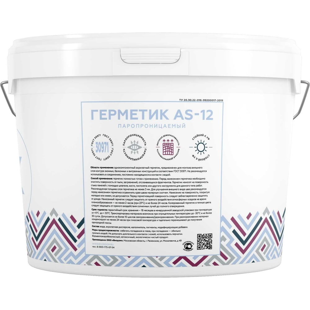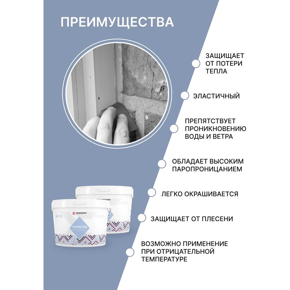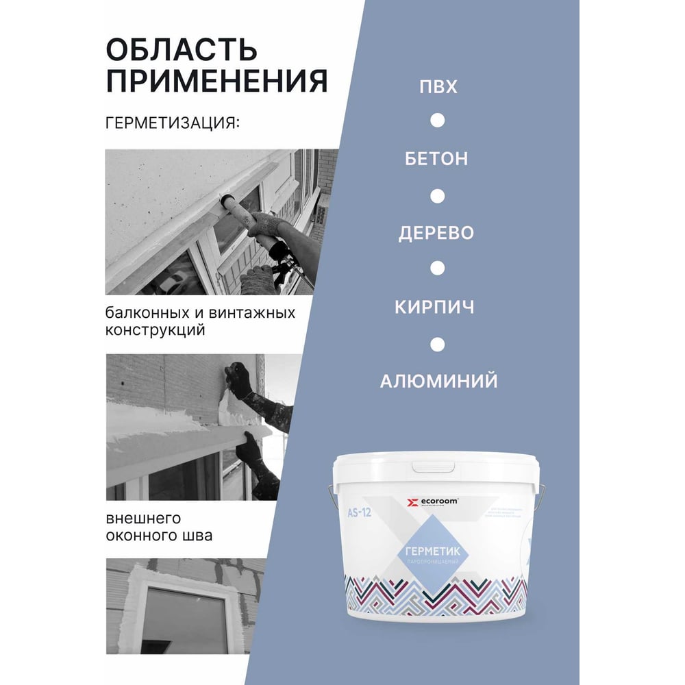 Акриловый герметик ECOROOM AS-12 (паропроницаемый; белый; 7 кг) E-Герм-4183/7