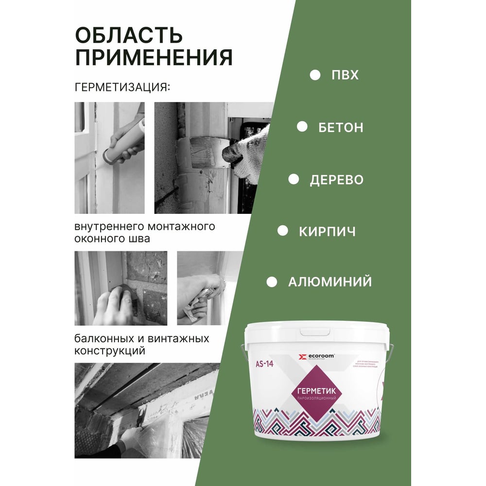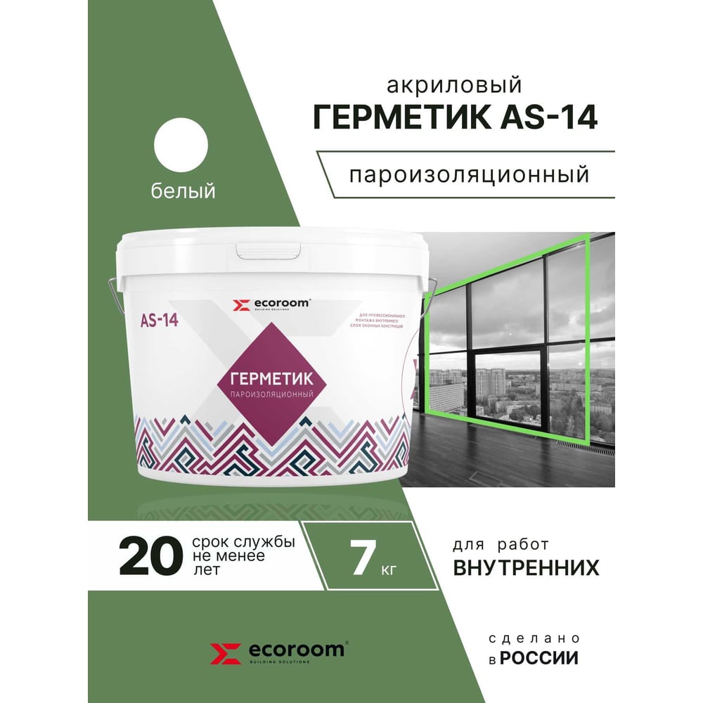 Акриловый герметик ECOROOM AS-14 (пароизоляционный; белый; 7 кг) E-Герм-4185/7