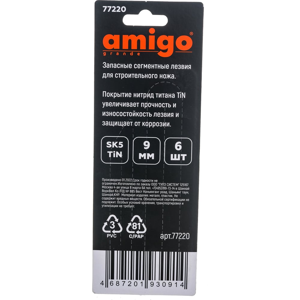 Лезвия TiN 6 шт, 9 мм для ножа AMIGO 77220