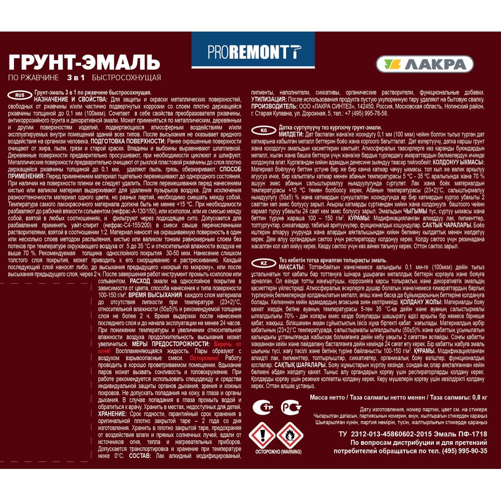 | Вес нетто | 0.8 кг |