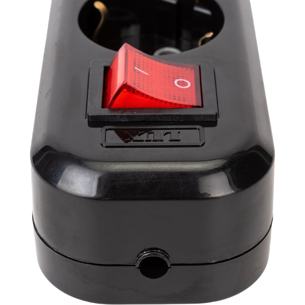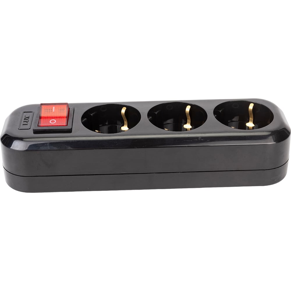 3-местная колодка LUX черная (розетка удлинителя) У3-ЕВК с заземлением и выключателем, 250В 16А 4606400420859