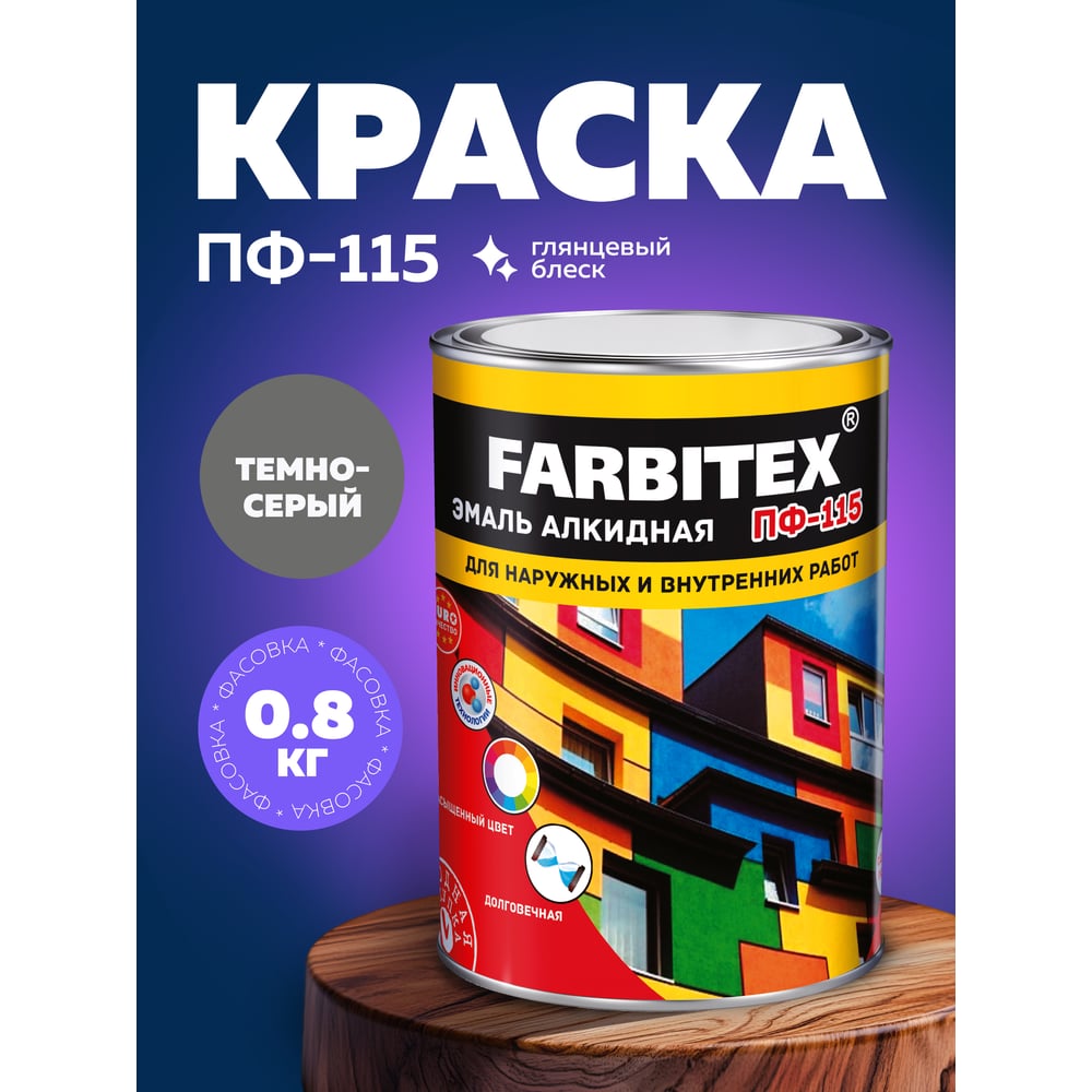 Алкидная эмаль FARBITEX ПФ-115 (темно-серый; 0.8 кг) 4300006007