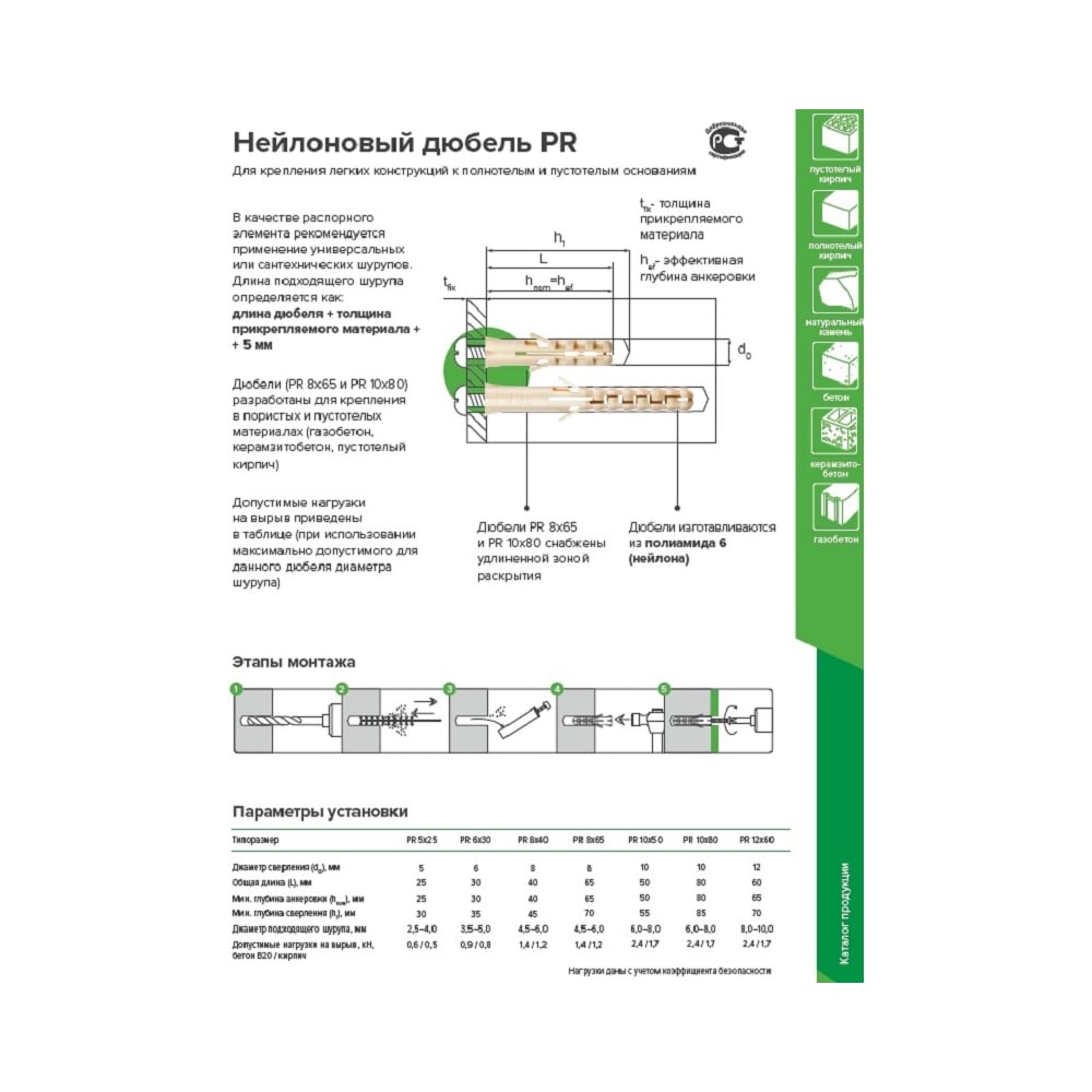 | Диаметр отверстия под дюбель | 10 мм |