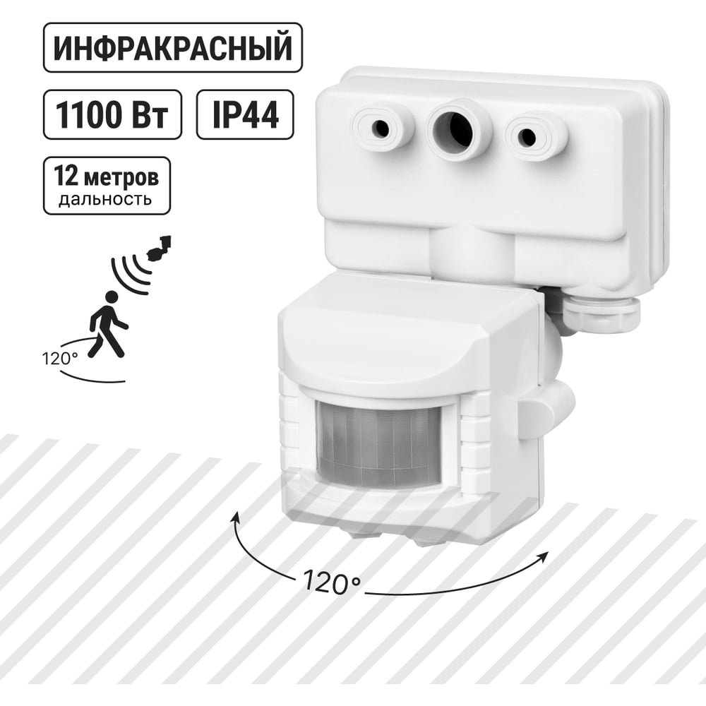 Габариты без упаковки 95х83х108 мм Тип установки на прожектор Вес нетто 0.24 кг Цвет корпуса белый ГОСТ ТР ТС 020/2011 Напряжение 230 В Модельный ряд ДДПр-01 Монтаж встраиваемый Уличный есть Светодиодный индикатор нет Таймер да Элементы питания сеть Рабочая температура от -20 до +45 °С Max угол обзора 120 град Степень защиты корпуса 44 IP Wi-Fi нет Max мощность нагрузки 1100 Вт Фотореле нет Звуковой сигнал нет Возможность угловой установки нет Задержка времени выключения 5 сек - 8 мин Освещенность датчика 5 - 2000 Люкс Дальность действия 12 м Рекомендуемая высота установки 1.7 м Max задержка выключения/отключения 8 мин Подключение трехпроводной Принцип действия инфракрасный Виды режимов LUX/TIME