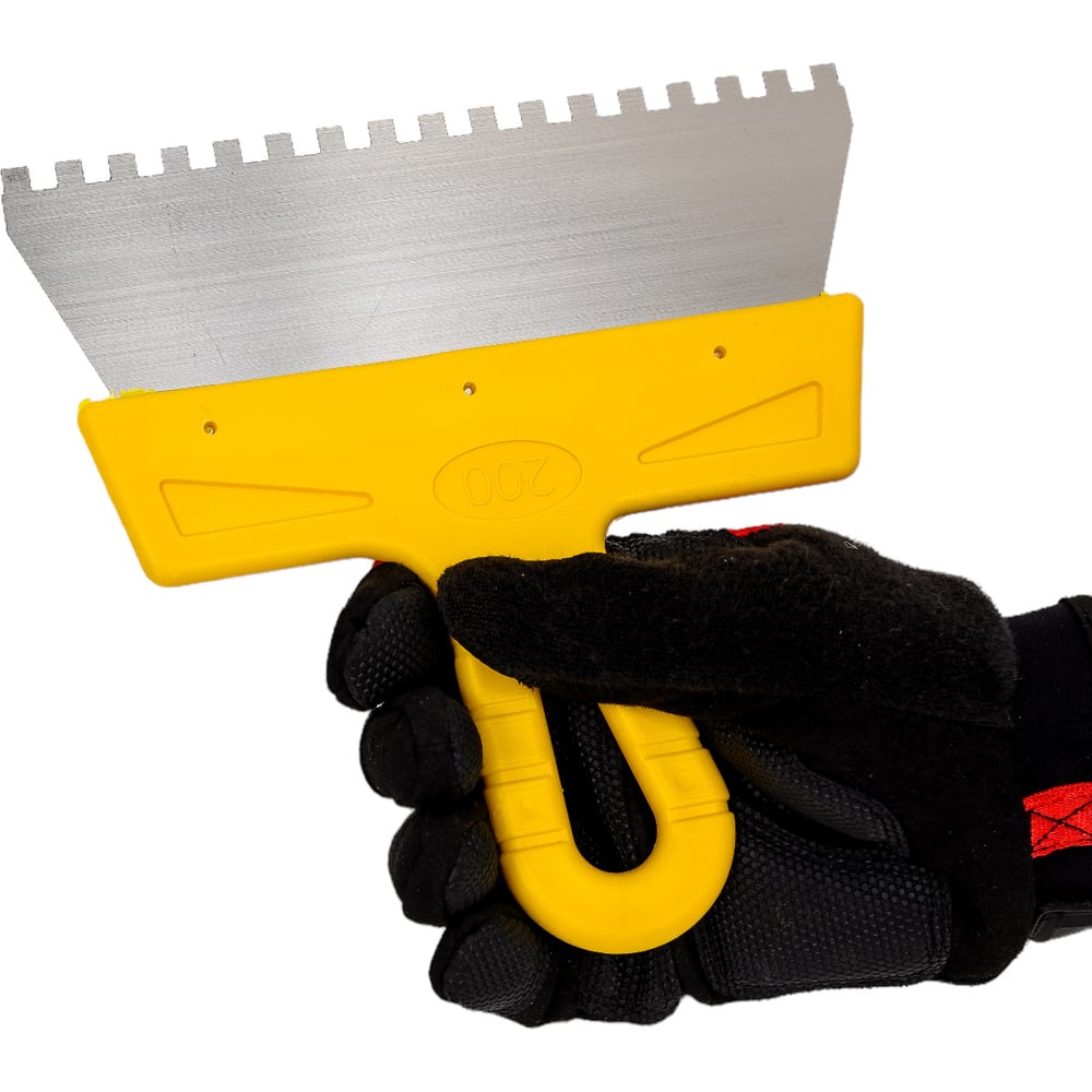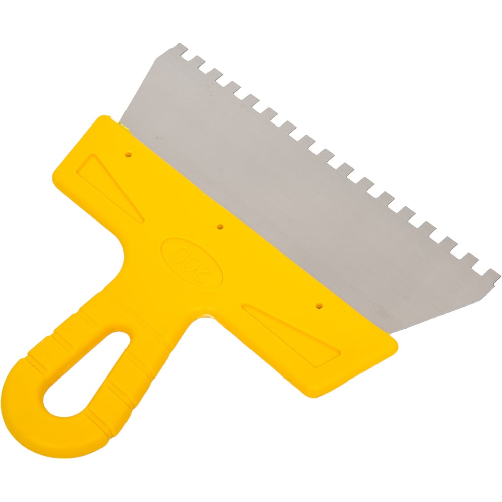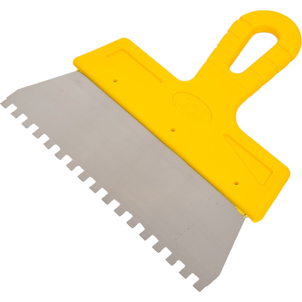 Фасадный зубчатый шпатель (200 мм, нержавеющая сталь, 6 мм, желтая ручка) Biber МАСТЕР 35183 тов-176010