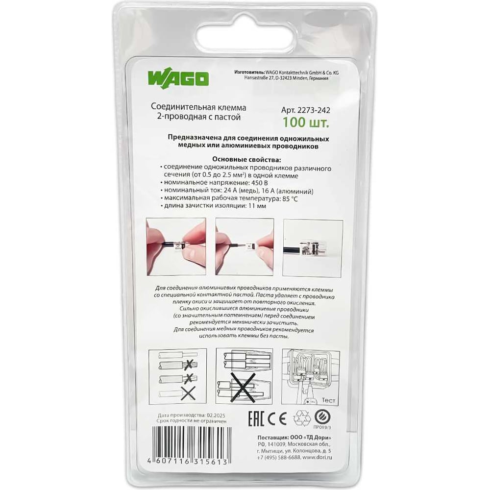 Клемма WAGO 2273-242 (с пастой) 100 шт. 2685