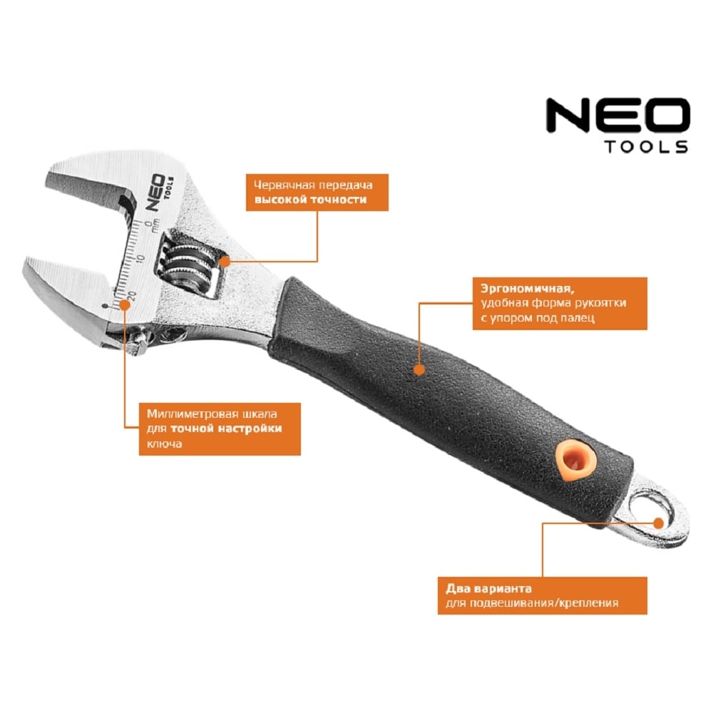 Разводной ключ, 150 мм, рабочий диапазон 0-23 мм NEO Tools 03-027