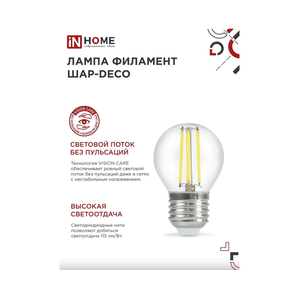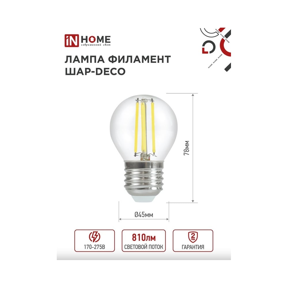 Светодиодная лампа IN HOME LED-ШАР-deco 4690612016320