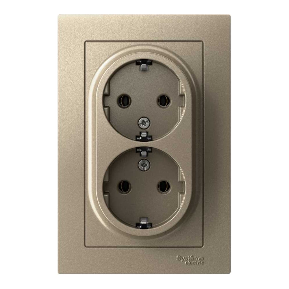 Розетка двойная Systeme Electric (Schneider Electric) AtlasDesign, с заземлением, 16 А, в сборе, шампань ATN000524