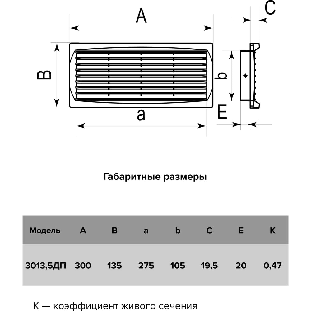 Решетка вентиляционная переточная 300х135 мм ERA 3013,5ДП кор 90-02840