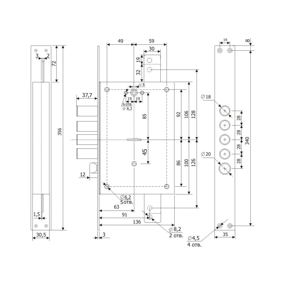 | Удаление ключевого отверстия (Backset) | 63.5 мм |