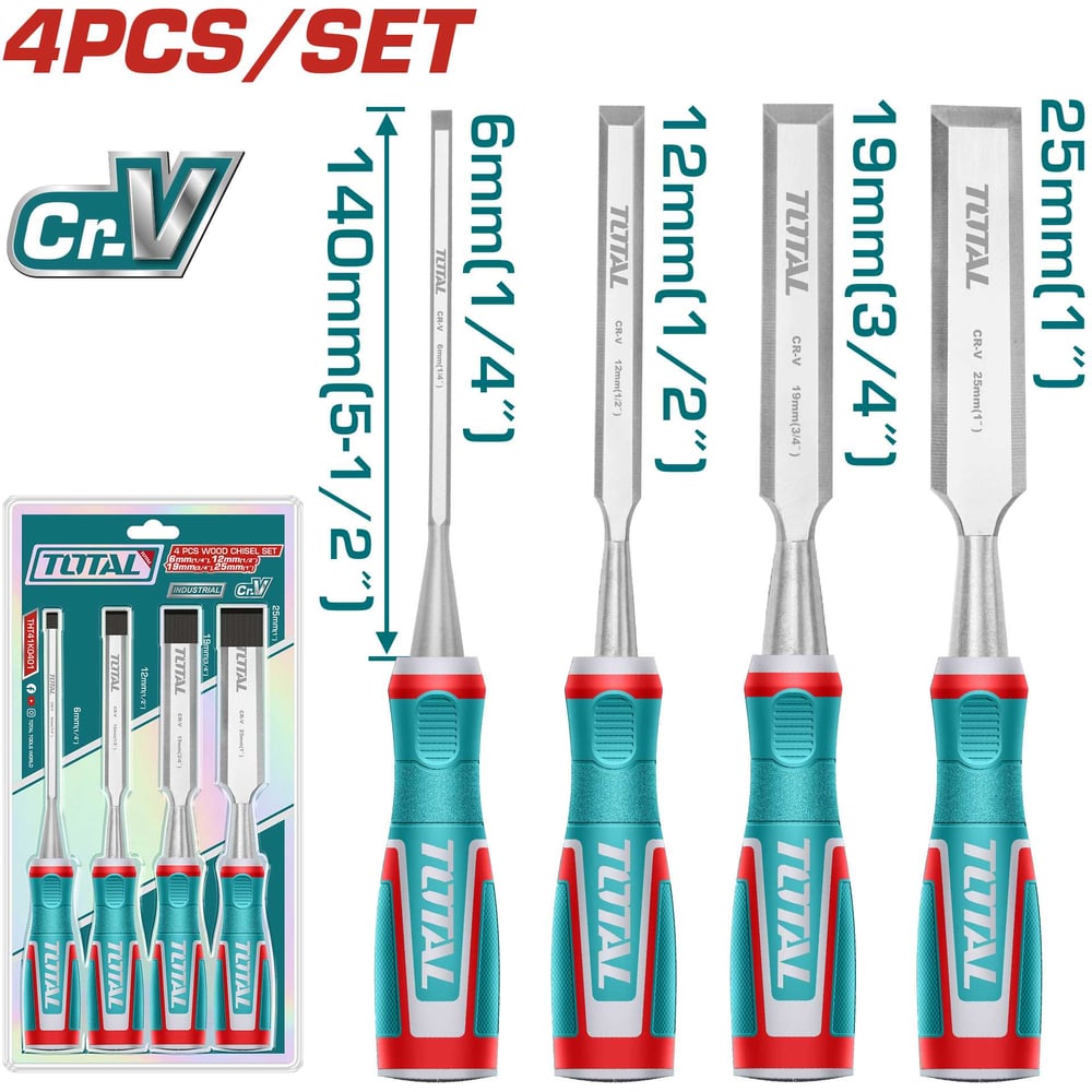 Набор стамесок по дереву 4 шт. TOTAL THT41K0401