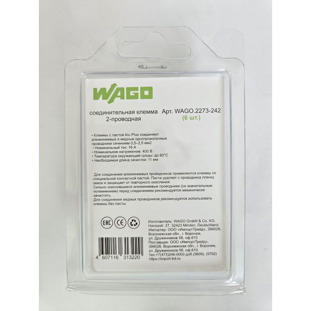| Количество зажимаемых проводов | 2 шт |