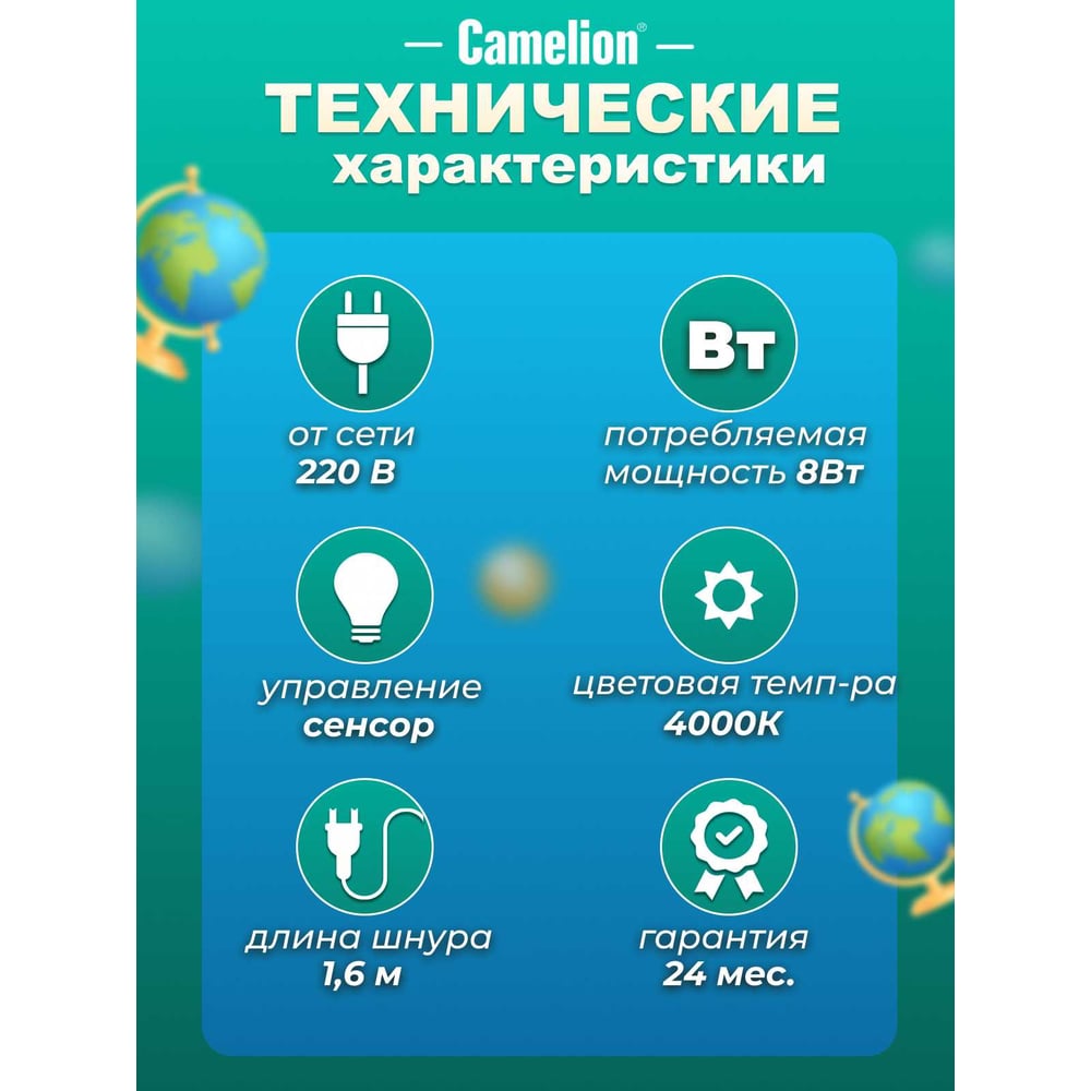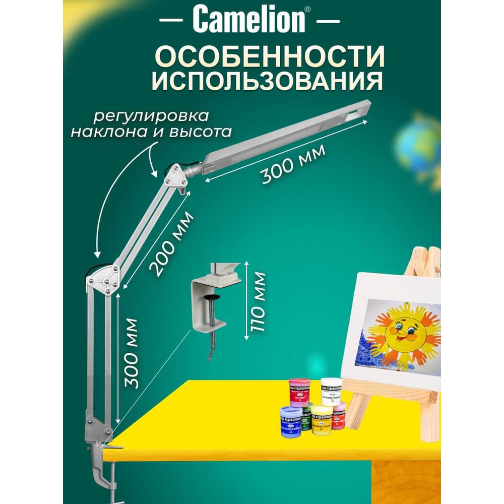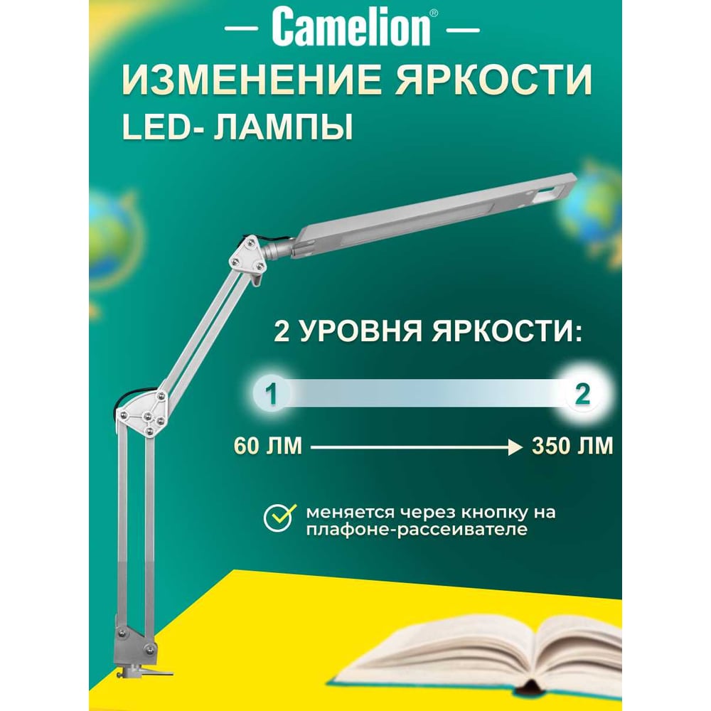Настольный светильник Camelion KD-821 C03 серебро LED 8Вт, 230В, 2 уровня яркости, 350Лм, струбцина 13528