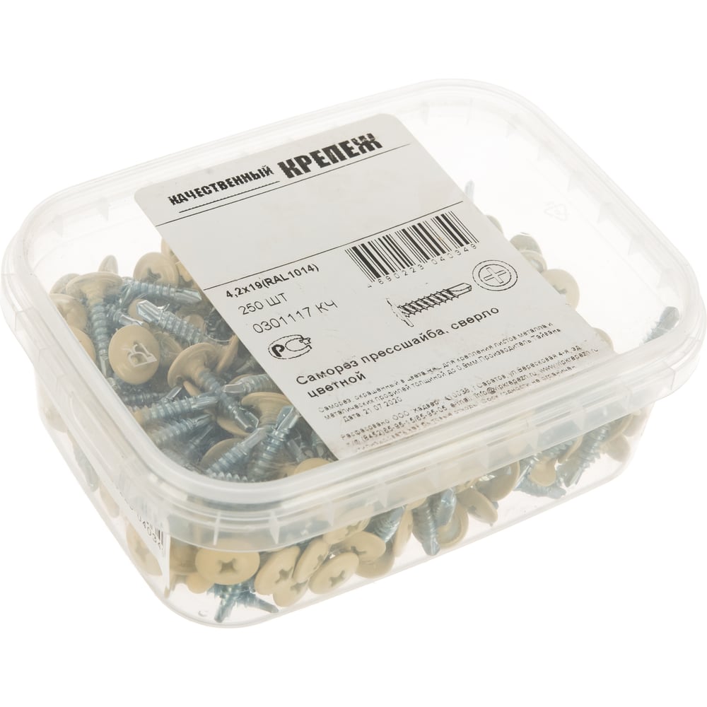 Прессшайба Качественный КРЕПЕЖ 4.2х19 мм, слоновая кость RAL 1014, сверло, 250 шт 0301117 КЧ