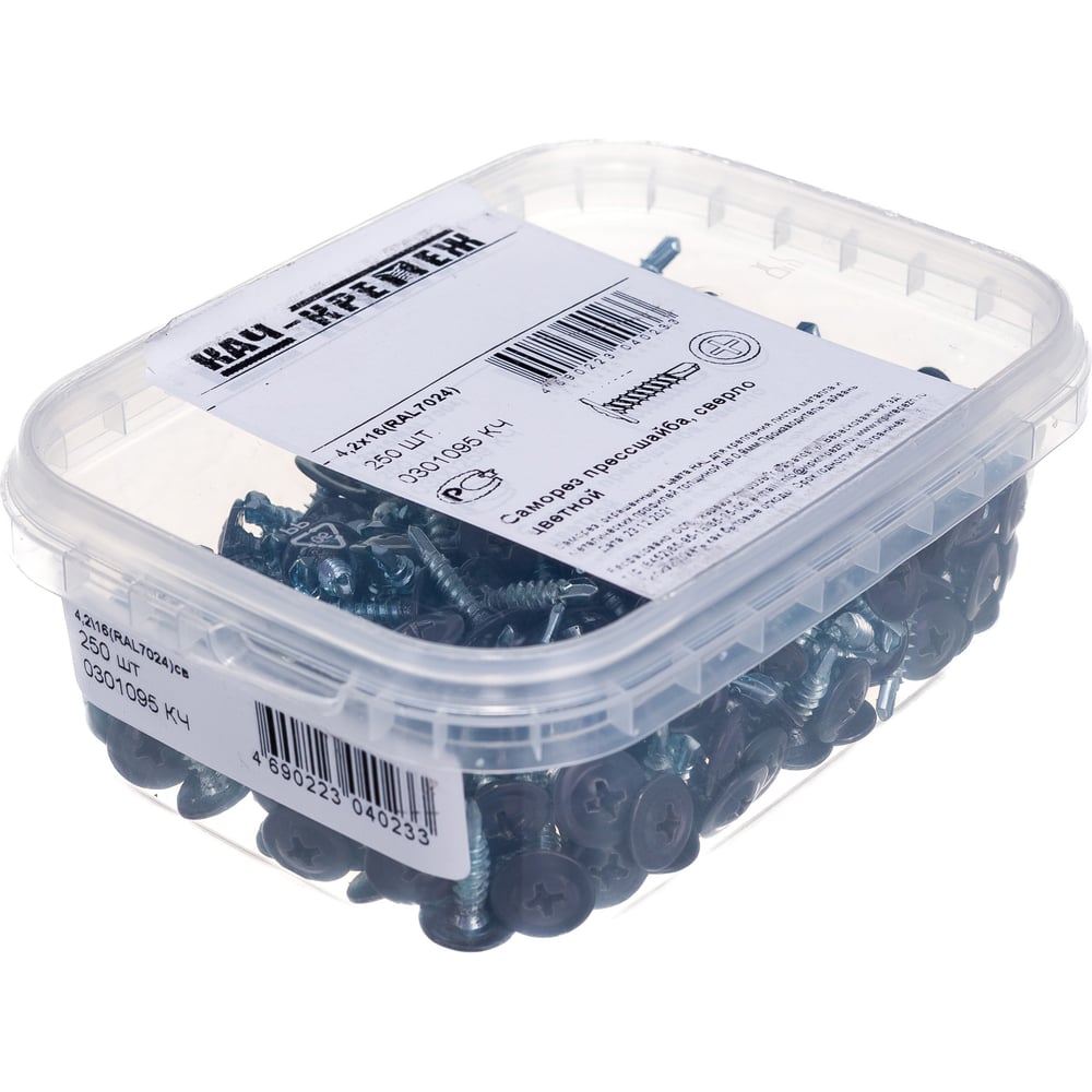 Прессшайба Качественный КРЕПЕЖ 4.2х16 мм, серый графит RAL 7024, сверло, 250 шт 0301095 КЧ