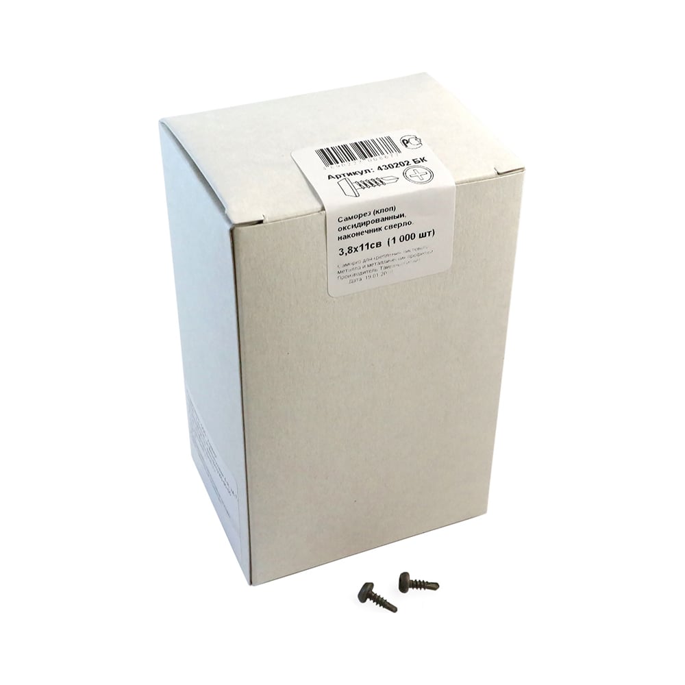 Длина 11 мм Тип фасовки шт. Материал сталь Покрытие оксидированный Диаметр 3.8 мм Наличие пресс-шайбы нет Нержавеющая сталь нет Цвет покрытия черный Форма головки полуцилиндрическая Размер шлица PH2 Шлиц Phillips (PH) Наконечник сверло Цвет RAL нет Толщина скрепляемых материалов 0.7-2.4 мм Фасовка 1000 шт