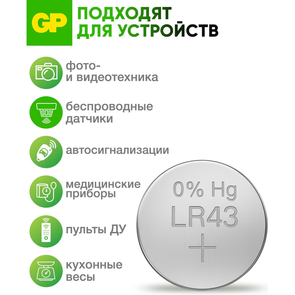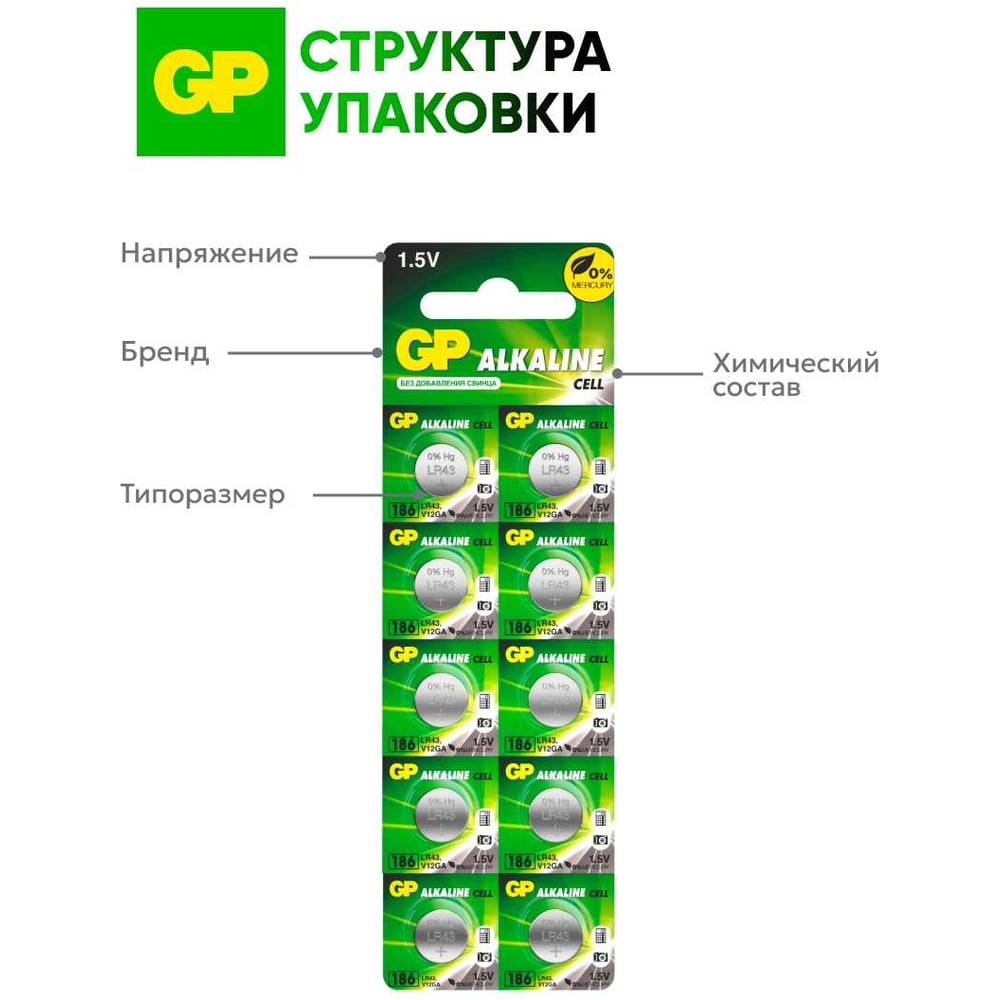 Алкалиновые пуговичные батарейки GP 186A - 10 шт., 186FRA-2C10 186FRA-2C10 15920396