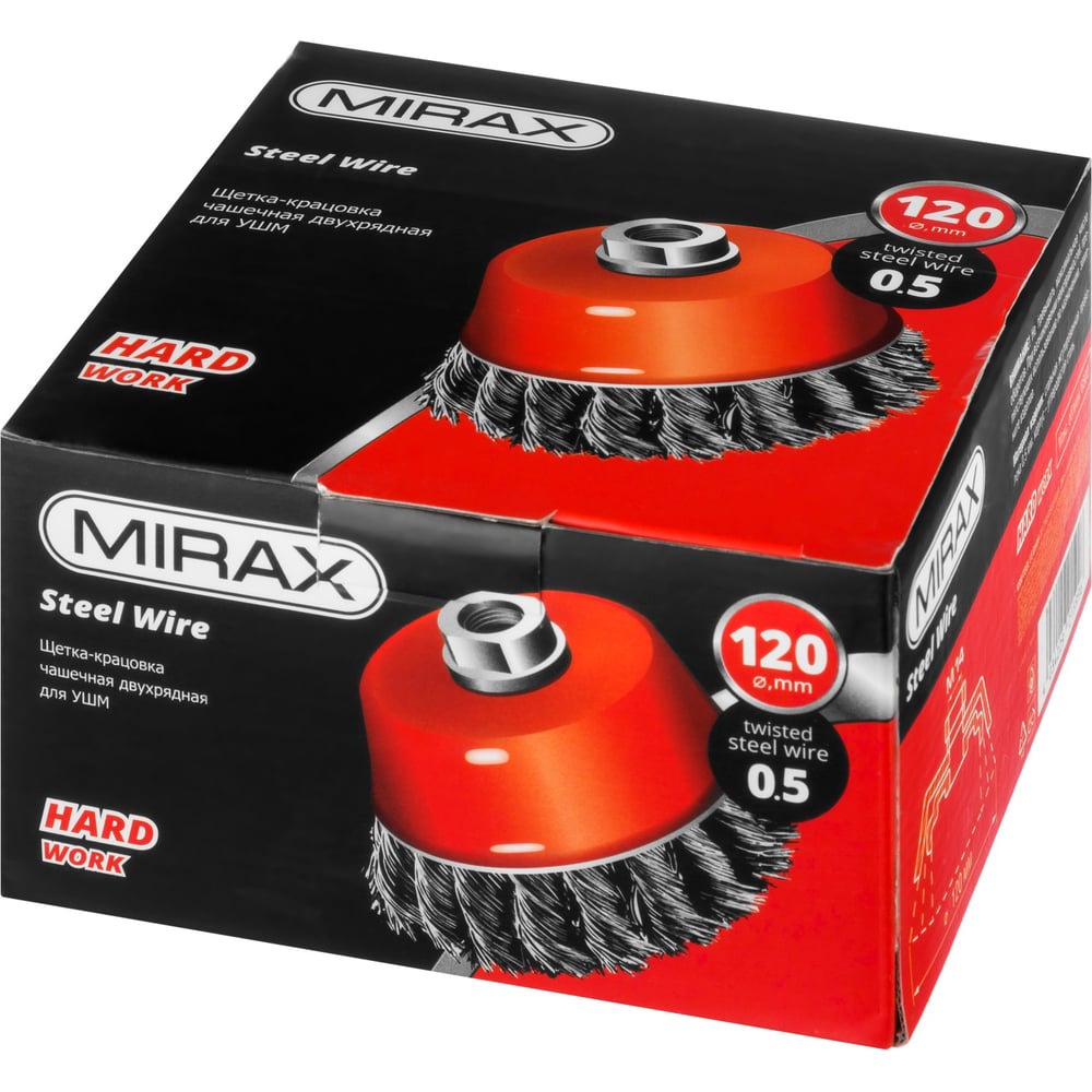 Щетка-крацовка чашечная для УШМ двухрядная (120 мм, М14) MIRAX 35104-120-2
