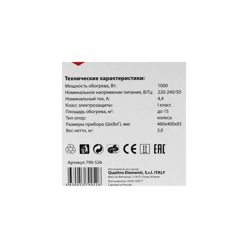 Конвекторный нагреватель воздуха QUATTRO ELEMENTI QE-1000KM 1 кВт. 790-526