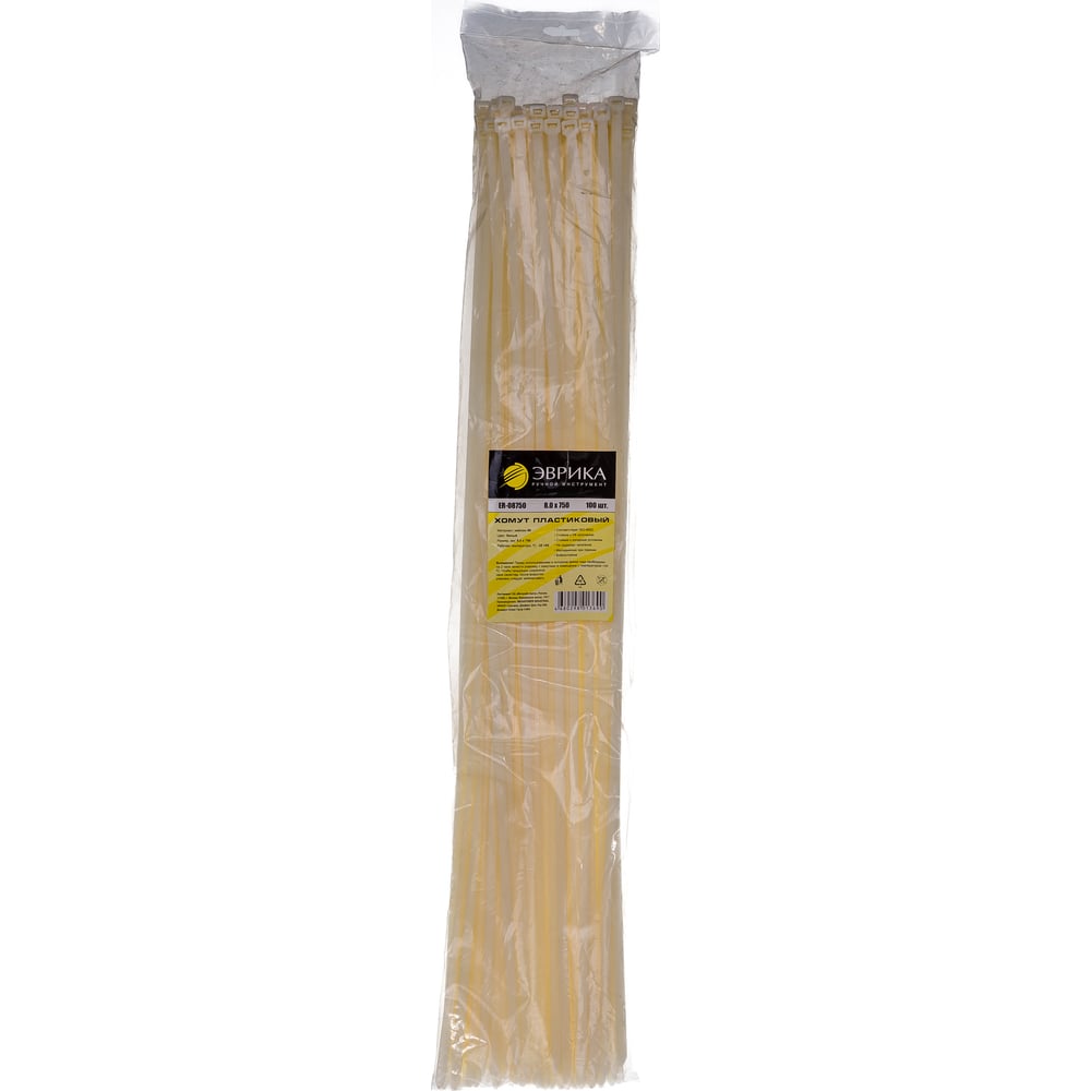 Пластиковый хомут белый 8.0x750мм универсальный 100шт Эврика ER-08750 956541