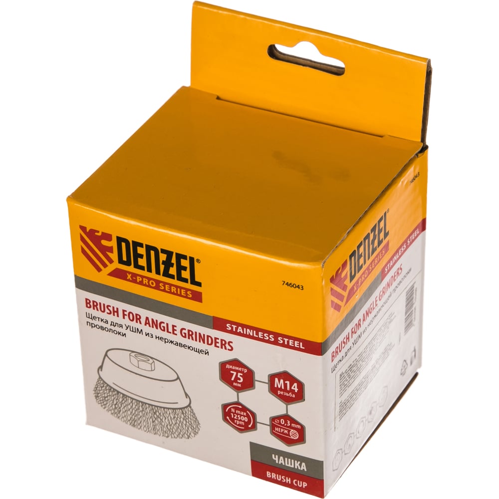 Щетка Чашка (75 мм; М14; витая нержавеющая проволока 0.3 мм) для УШМ DENZEL 746043