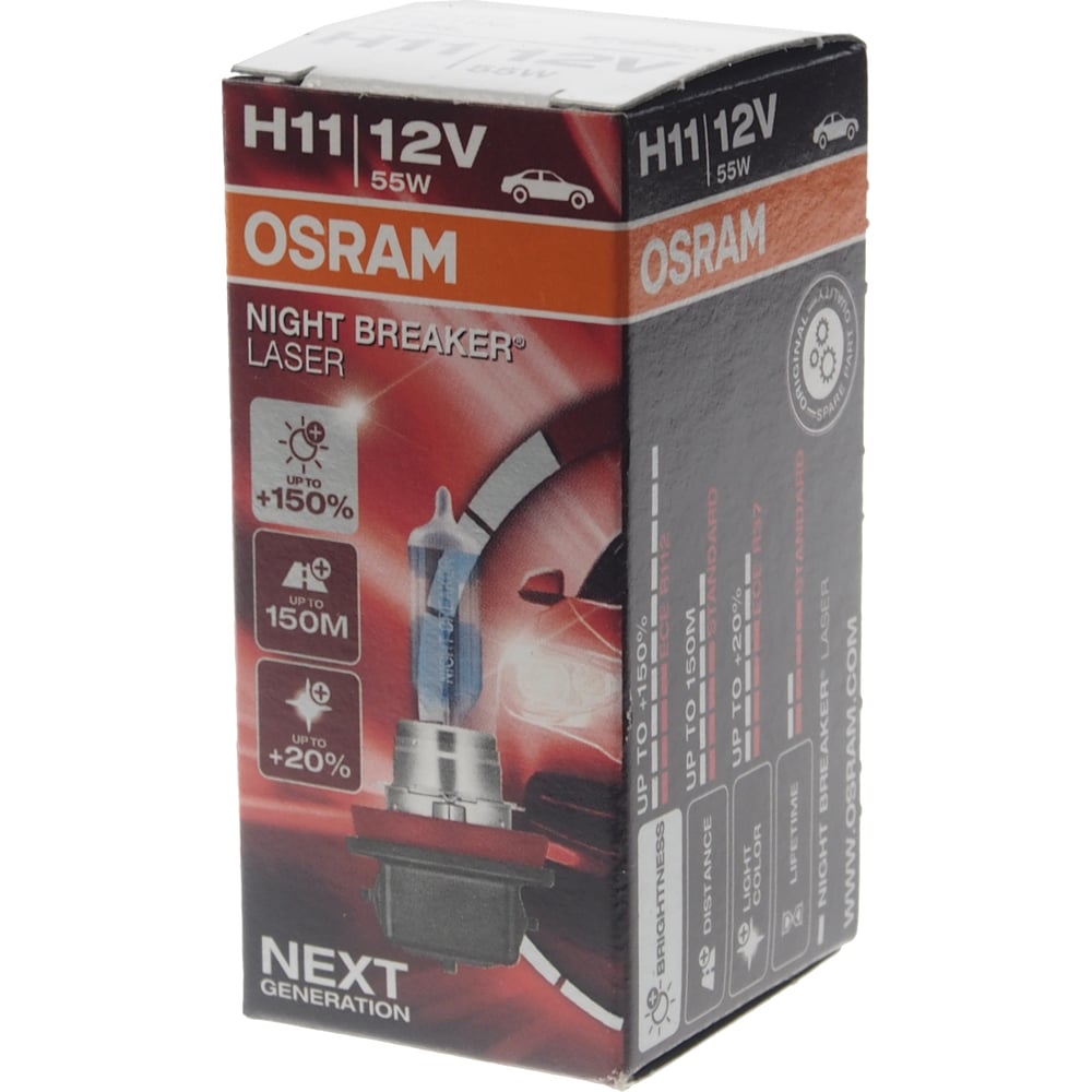 Автолампа Osram H11 55 PGJ19-2+150 NIGHT LASER 3750K 12V ,1,10 64211NL
