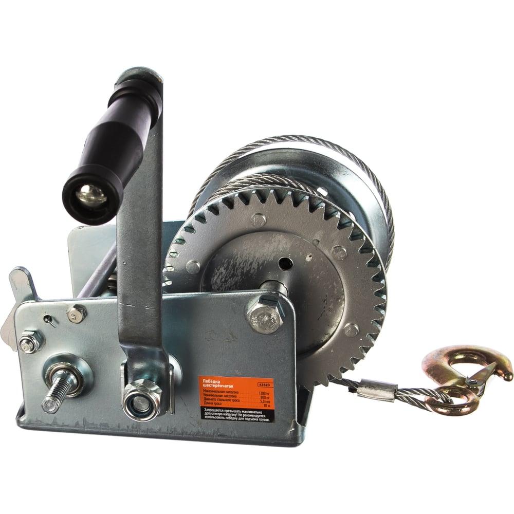 Шестеренчатая лебедка АвтоDело 1200 кгс, сталь, трос 10м 43620 11034