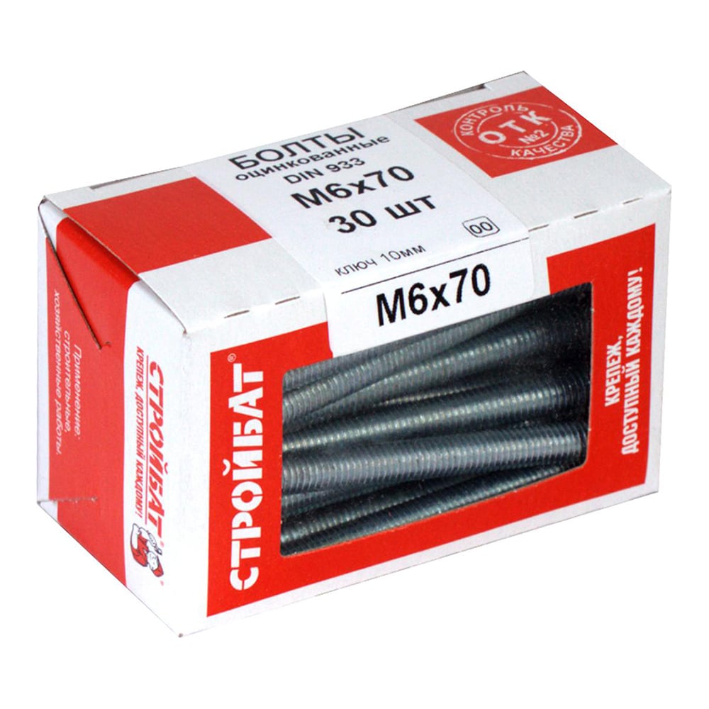 Оцинкованные болты Стройбат DIN 933 М6х70 30 шт. 2630023/272461