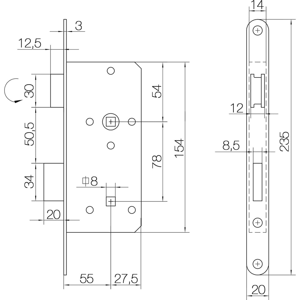 Корпус замка Doorlock DL403/55 WC78 MCR 75312