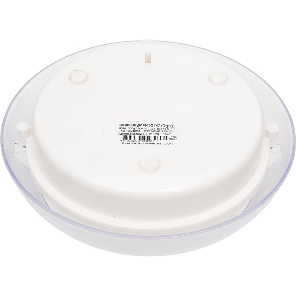 Габариты без упаковки 220х220х105 мм Цвет плафона/арматуры прозрачный/белый Вес нетто 0.46 кг Мощность светильника 12 Вт Тип лампы светодиодная Защита от пыли и влаги IP54 Материал корпуса поликарбонат Материал плафона термостойкий пластик Вид крепления накладной Коллекция ДБП Длина 22 см Ширина 22 см Форма корпуса круг Влагозащищенный да Пылезащищенный да Высота 10.5 см Мощность лампочки 12 Вт Провод без провода Основной цвет белый Диаметр 22 см Количество ламп 1 шт Количество и напряжение элементов питания 220В Климатическое исполнение УХЛ1 Элементы питания сеть Взрывозащищенный нет Датчик движения нет Защитная решетка нет Датчик звука нет Вандалоустойчивость нет
