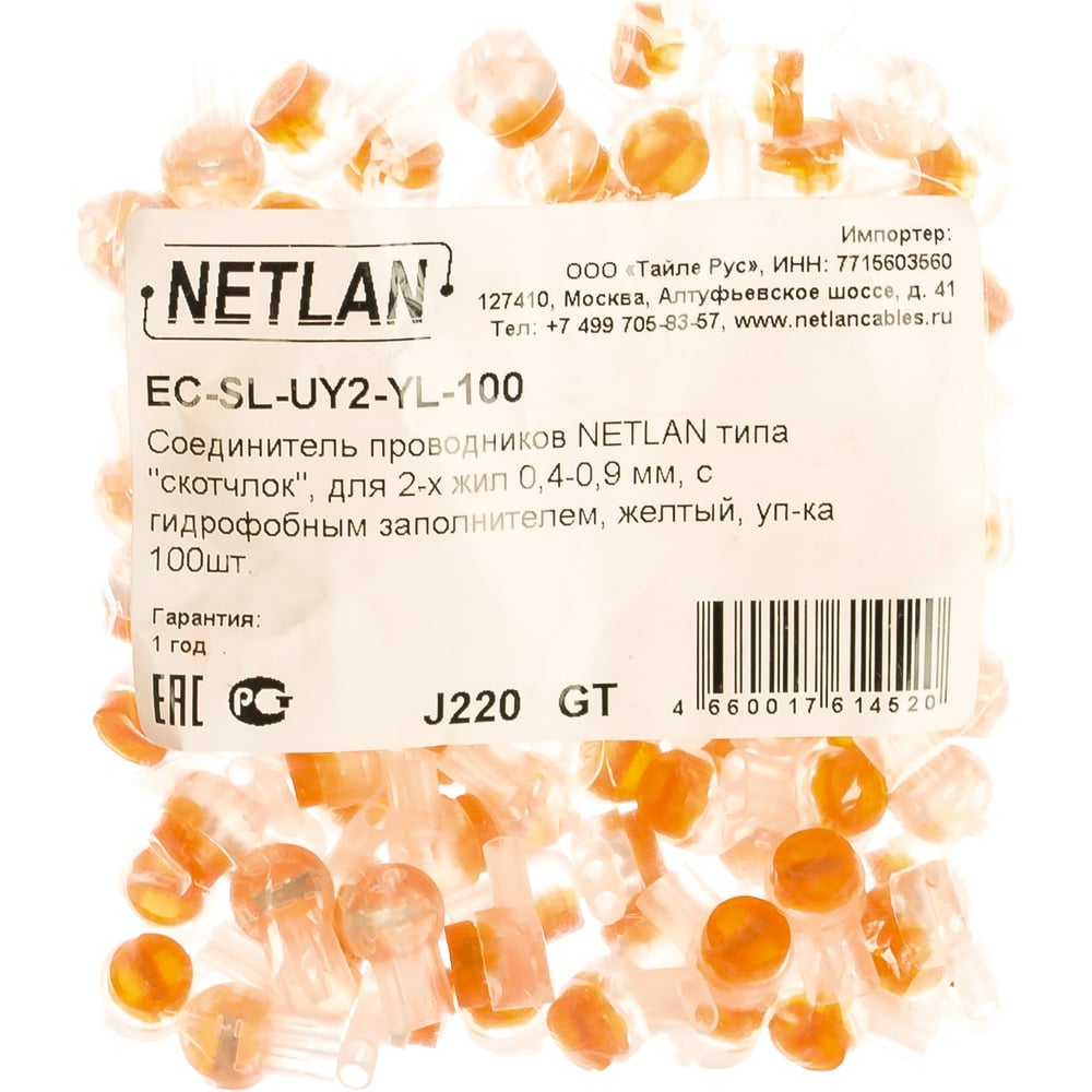 Соединитель проводников для 2-х жил NETLAN "скотчлок" EC-SL-UY2-YL-100