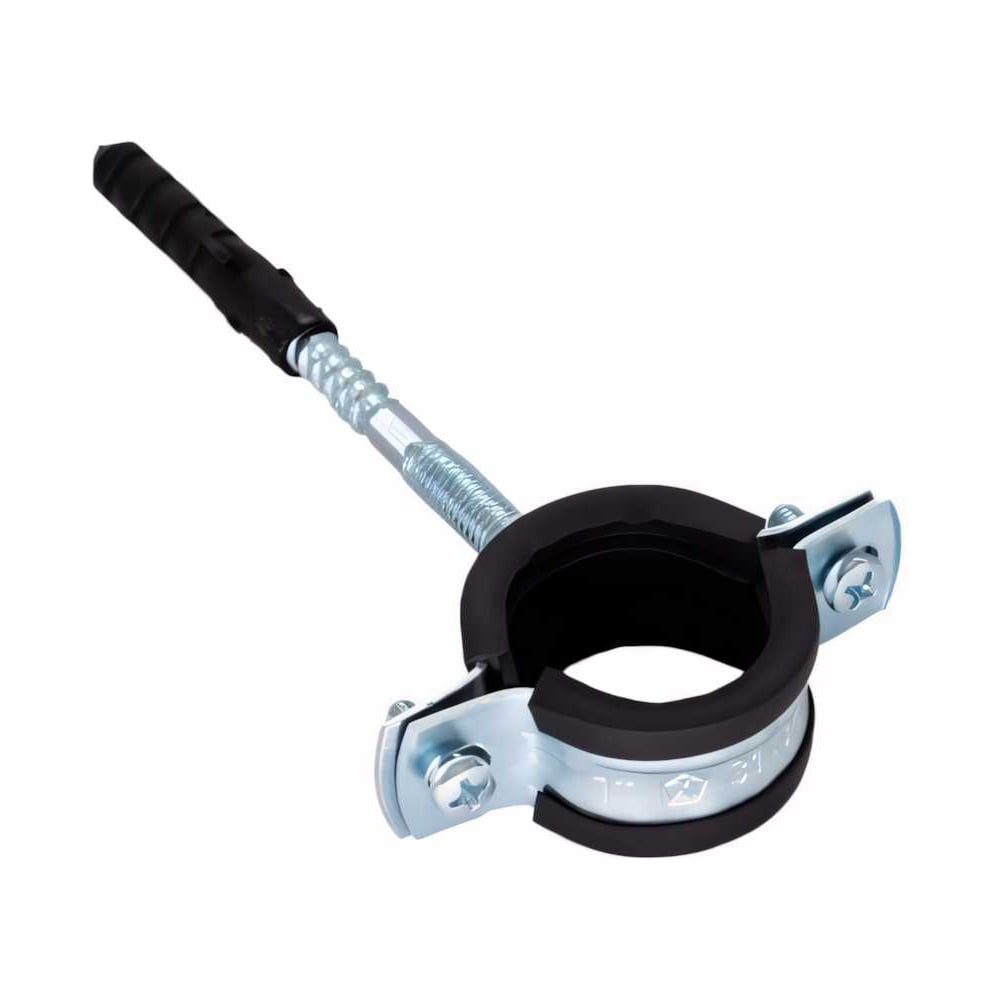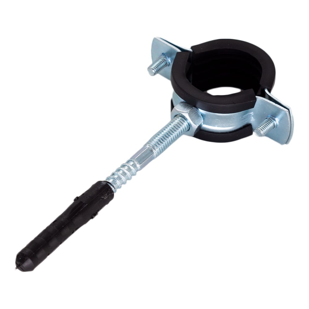 Материал сталь Покрытие оцинкованный Тип сантехнический с шурупом ГОСТ нет Max диаметр 43 мм Min диаметр 38 мм Фасовка 1 шт Резьба гайки М8 Диаметр трубы 1 1/4 дюйм С быстродействующим замком нет Длина шпильки (шурупа) 80 мм