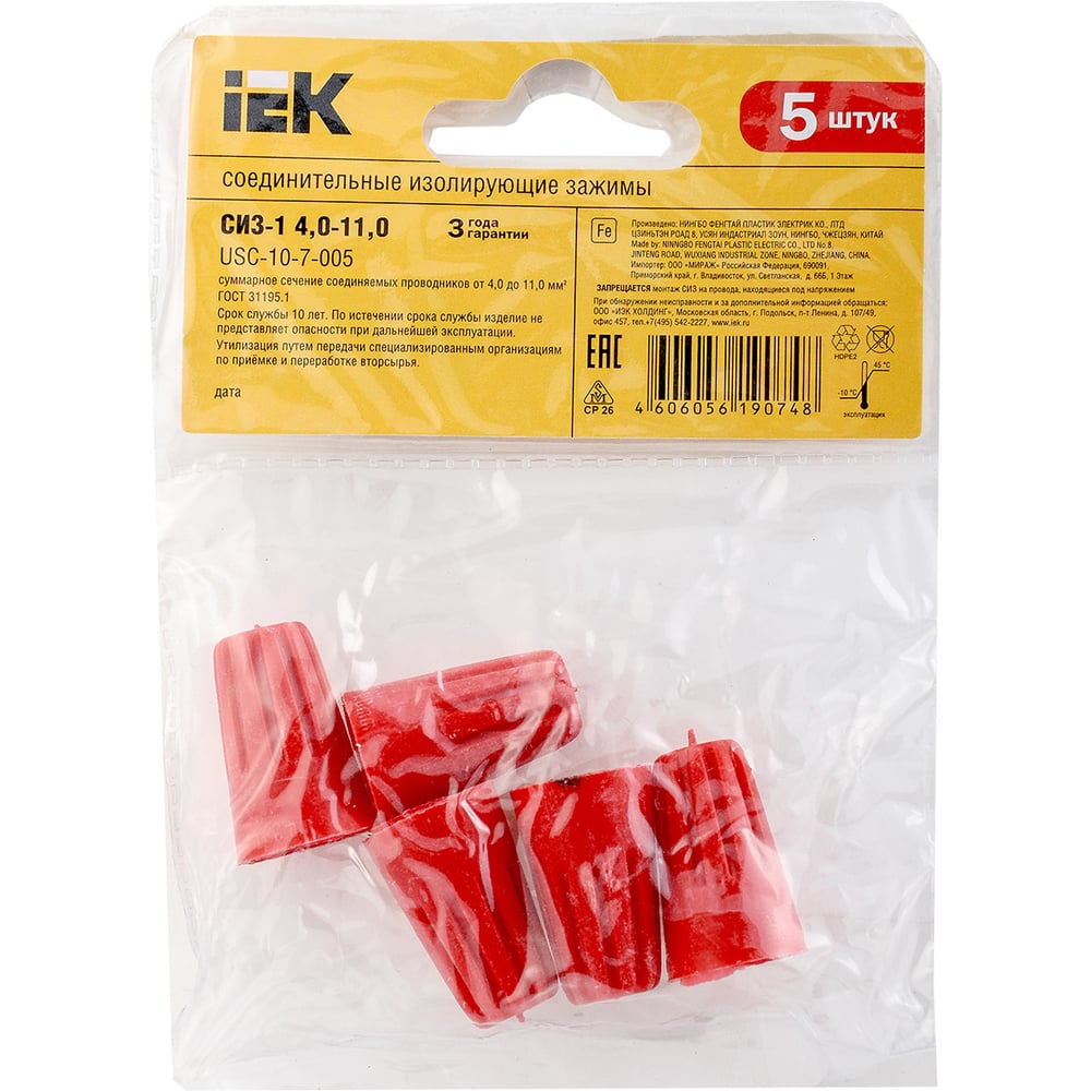 Соединительный зажим IEK СИЗ-1, 4.0-11.0, красный, 5шт, ИЭК USC-10-7-005