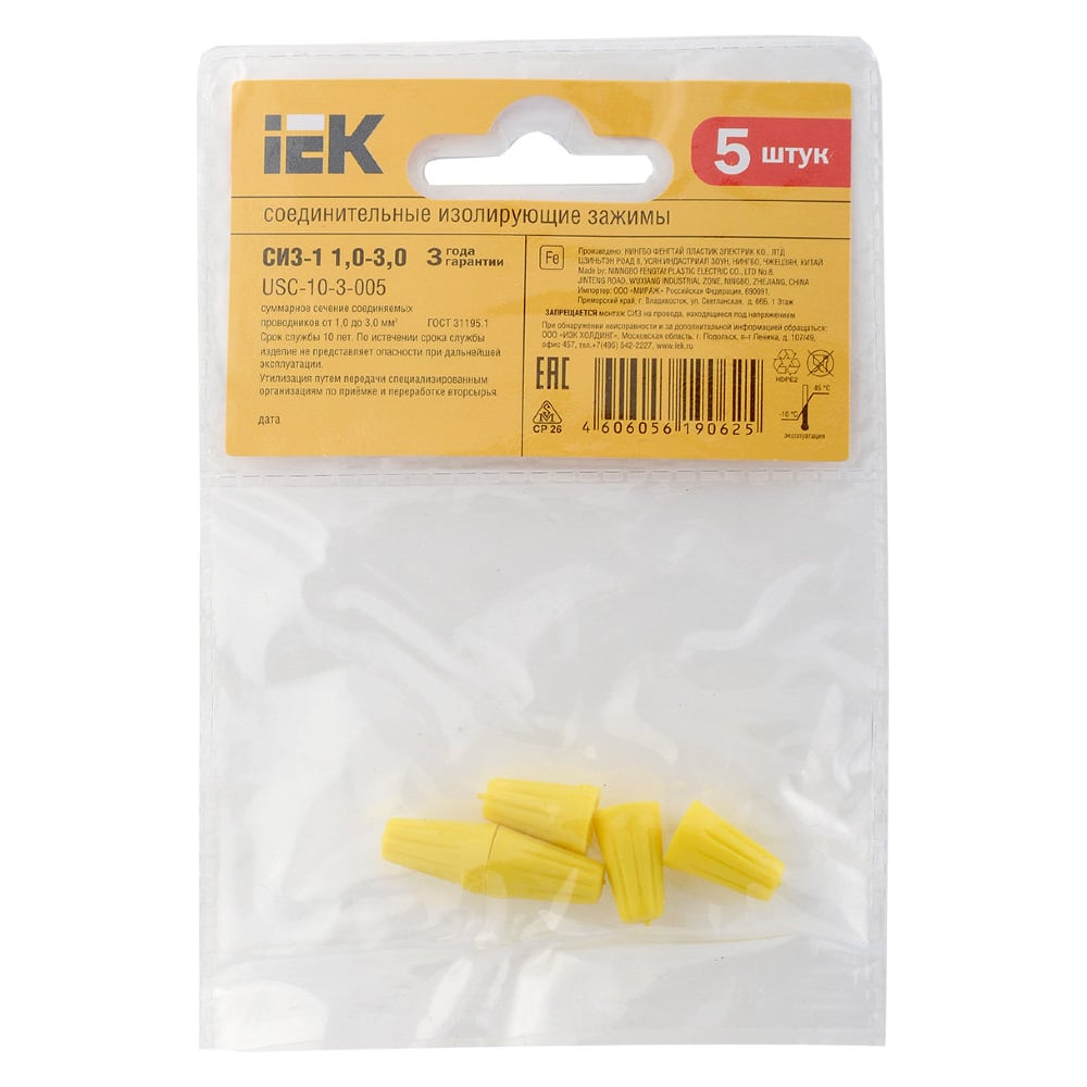 Соединительный зажим IEK СИЗ-1, 1.0-3.0, желтый, 5шт, ИЭК USC-10-3-005
