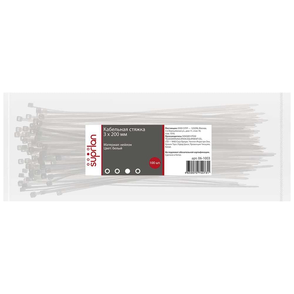Хомут стяжка нейлоновая SUPRLAN 3х200мм белая /100pcs/ 06-1003