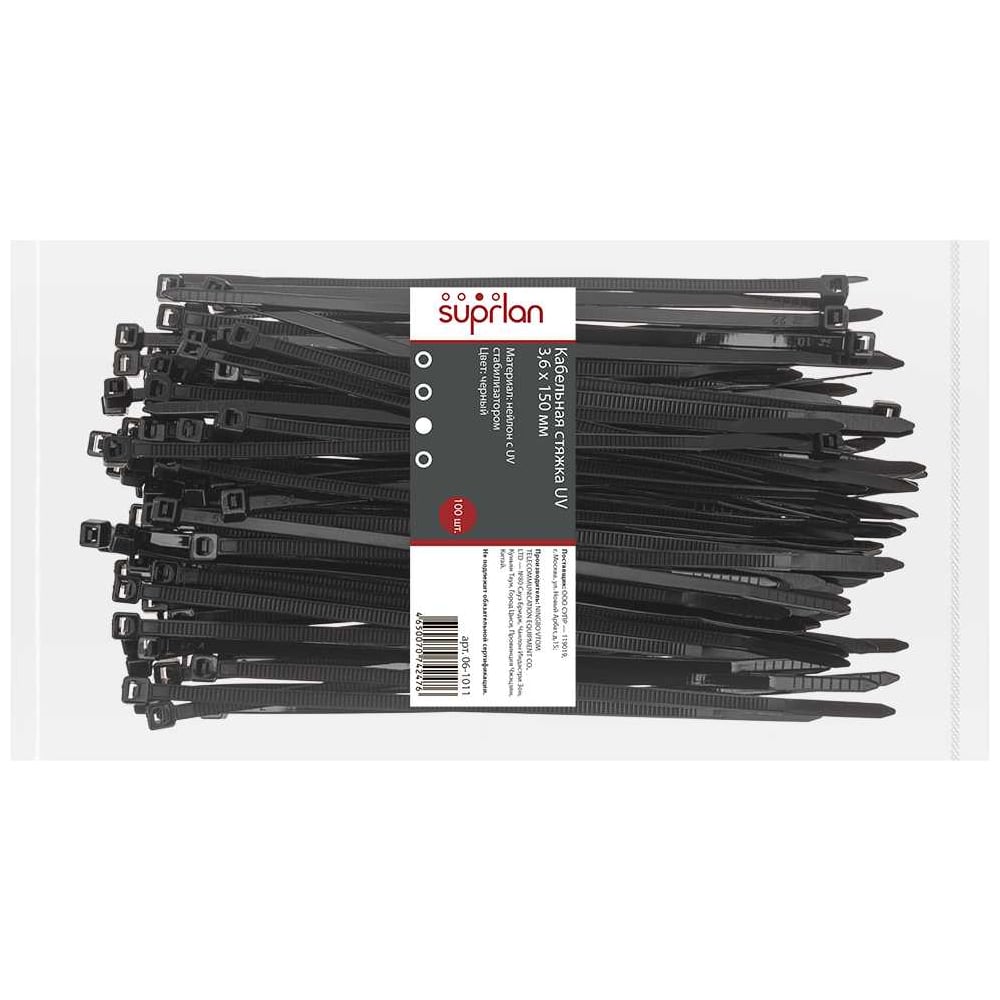 Хомут стяжка нейлоновая SUPRLAN 3,6х150мм черная UV /100pcs/ 06-1011