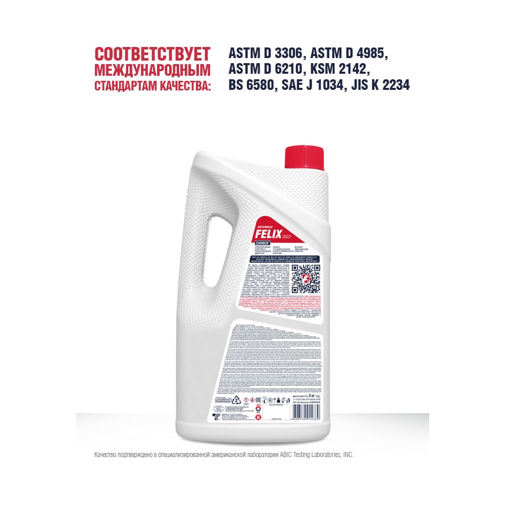 Антифриз FELIX CARBOX -45 G-12+, 3кг, красный 430206326