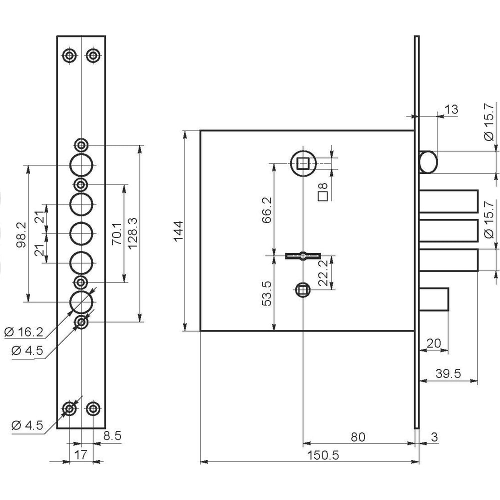 | Удаление ключевого отверстия (Backset) | 80 мм |