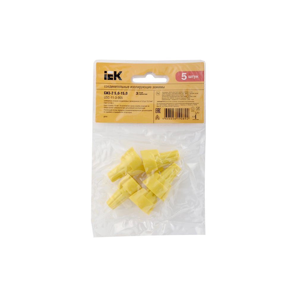 Соединительный изолирующий зажим IEK СИЗ-2, 5,0-15,0, желтый, 5 шт, ИЭК USC-11-3-005
