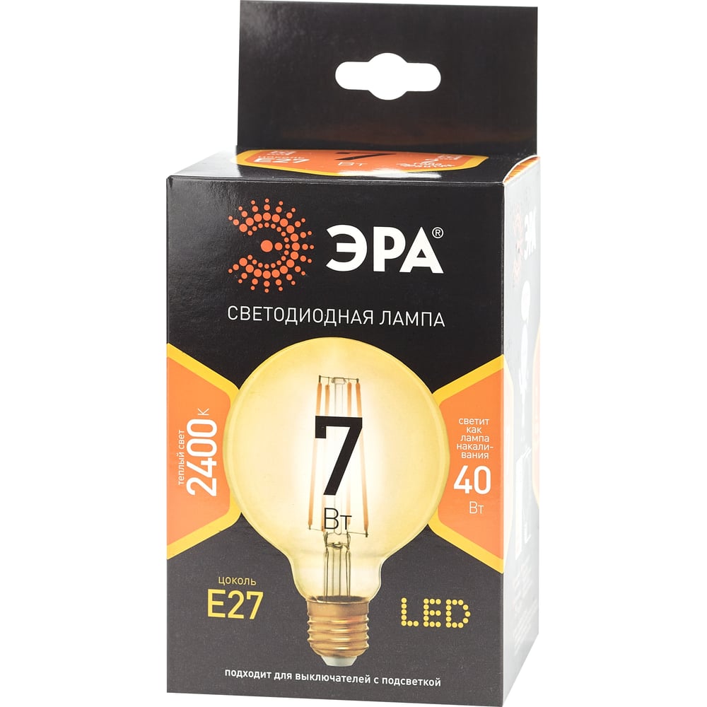 Филаментная лампа ЭРА FLED G95-7W-824-E27 gold, шар, золото, 7 Вт, теплый, E27, 20/420 Б0047662