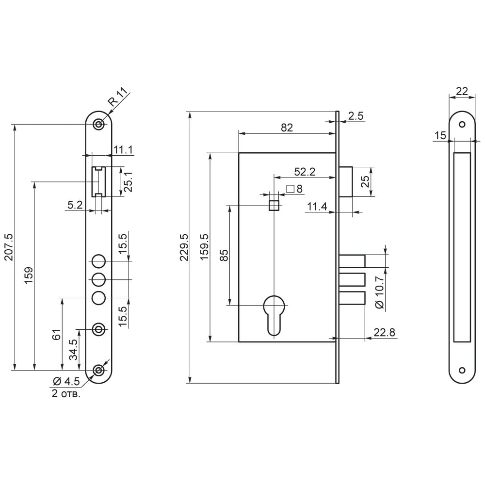 | Вылет ригеля | 22.8 мм |