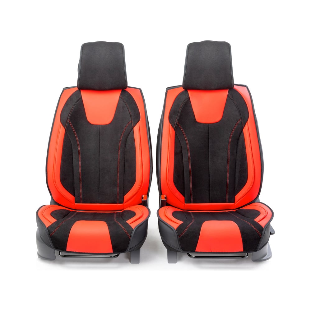 Каркасные 3D накидки на передние сиденья CarPerformance 2 шт., экокожа и алькантара CUS-3034 BK/RD