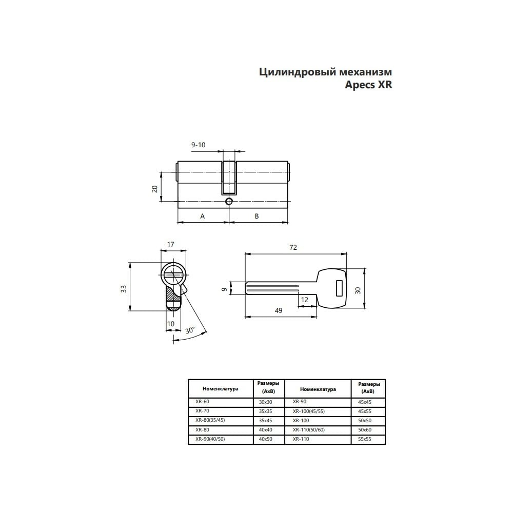Цилиндровый механизм APECS Premier XR-110-NI 19833