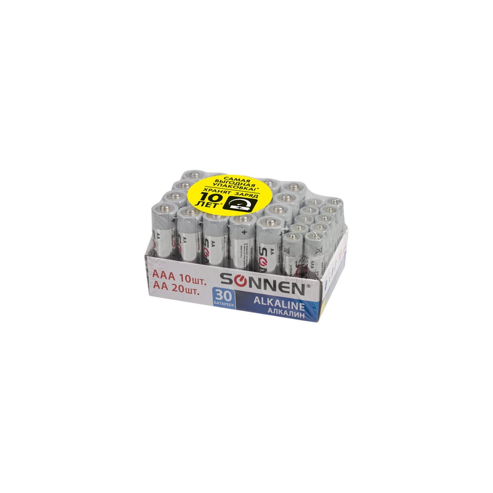 Батарейки SONNEN, КОМПЛЕКТ 30 шт, Alkaline, AA+ААА LR6+LR03, в коробке 455097