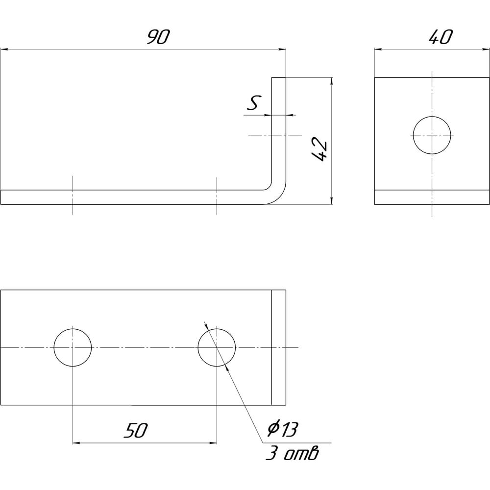 90° 3 отв.