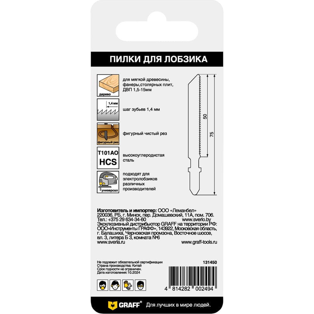 Пилка по дереву для лобзика GRAFF T101AO Standart 131450